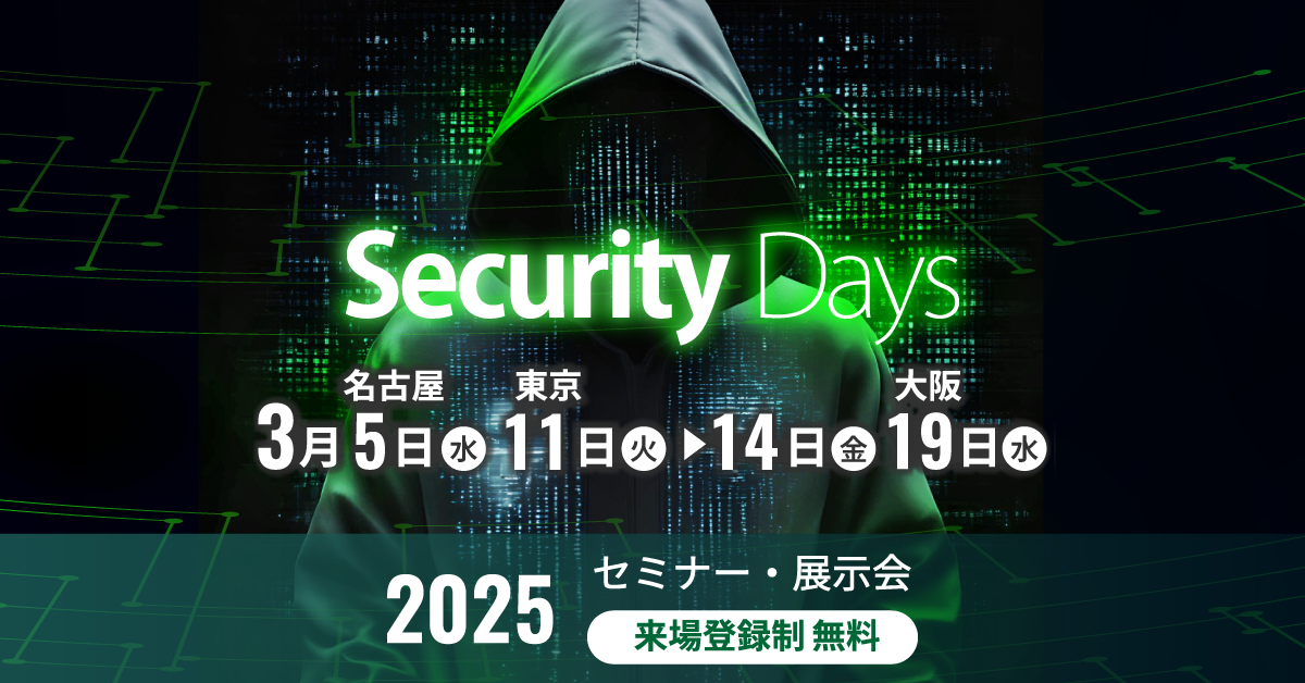 - Comments Off on セキュリティ対策イベント/Security Days Spring 2025 【名古屋:3/5、東京:3/11~3/14、大阪:3/19】開催