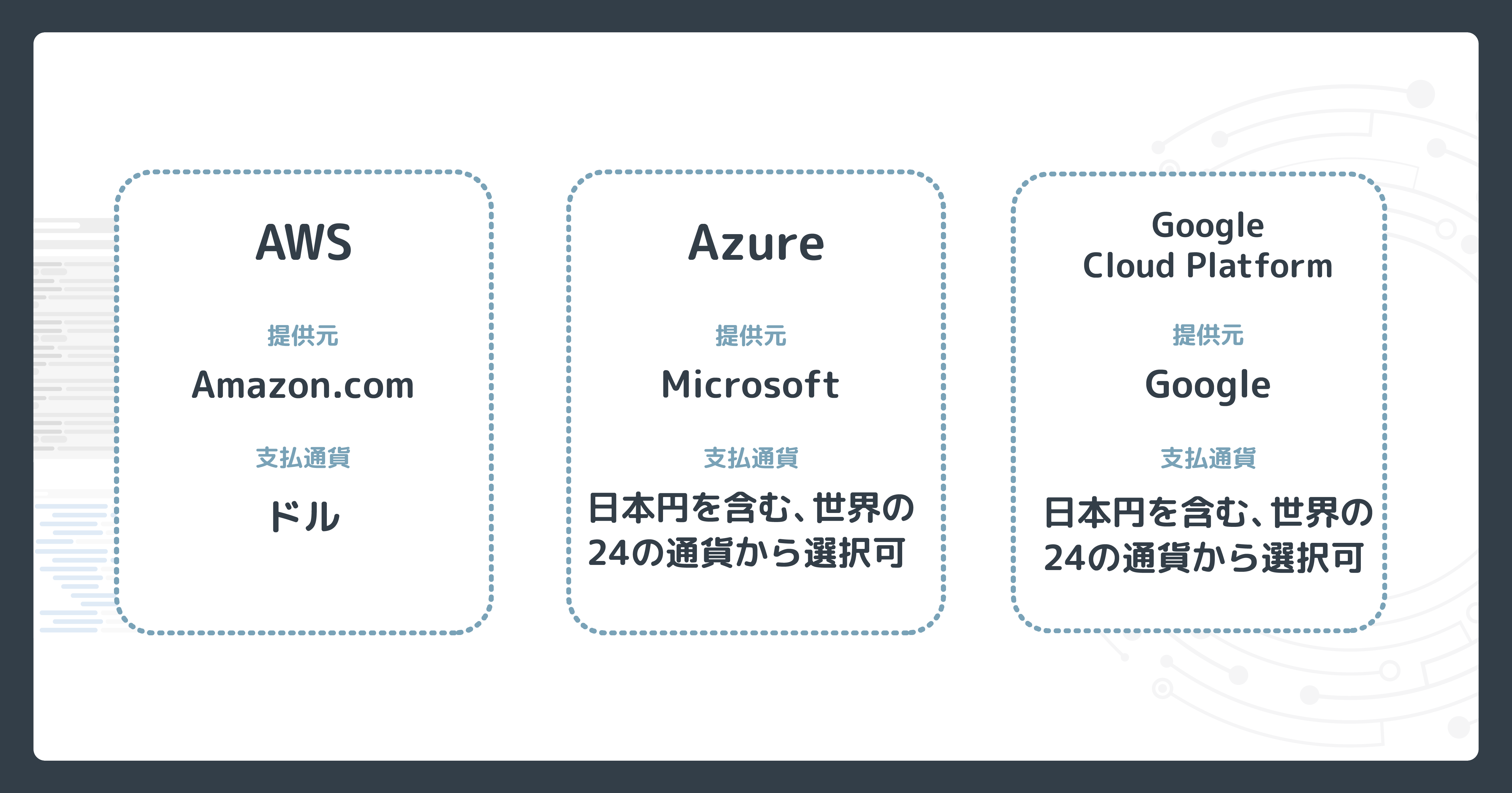 また中小企業の場合は特にですが、支払通貨の部分もしっかりと契約前に上申することは必須です。AWSは米ドルによる決済が基本であり、パートナー経由による支払いに限って日本円で決済が可能です。それに対しAzureは日本円はもちろんのこと、世界の24の通貨から支払通貨を選択できるようになっています。これにより、為替レートの変動に左右されることのないコスト予測が可能になります(もちろんマイクロソフトによる料金の見直しは随時行われます)。